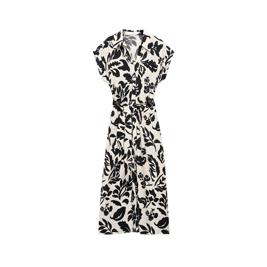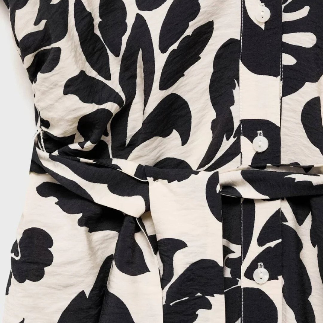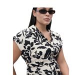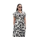The Voxlena Monochrome Floral Shirt Dress is where timeless tailoring meets modern ease. Designed for effortless sophistication, this piece blends the structure of a classic shirt with the fluid comfort of a relaxed midi dress. The bold black botanical print stands in striking contrast against a soft ivory base, creating a refined statement that works from daytime outings to elevated evening plans.
