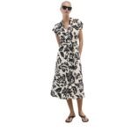 This is the kind of wardrobe essential that adapts to your style mood. Pair it with sandals or sneakers for casual chic, or elevate it with heels and bold accessories for dinner or events. The monochrome palette ensures easy coordination, while the oversized floral motif keeps the look contemporary and expressive.