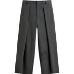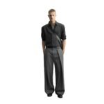 The structured pleats at the front add depth and elegance while enhancing movement and drape. A wide-leg silhouette offers a contemporary profile that flatters a variety of body types, balancing comfort with a polished aesthetic. The mid-to-high rise waist creates a clean line, pairing seamlessly with tucked-in shirts, knitwear, or tailored blazers.