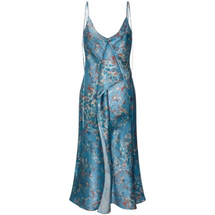 Voxlena Turquoise Marble Satin Slip Dress with Delicate Straps and Fluid Drape